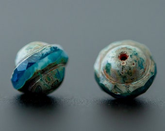8 10x8mm Czech Opaque Green Turquoise Metallic Silver Pearl Wash Saturn Saucer Ufo Faceted Glass Beads Bohemian Glass Beads Craft Supplies Tools Glass Beads Flawless Ie
